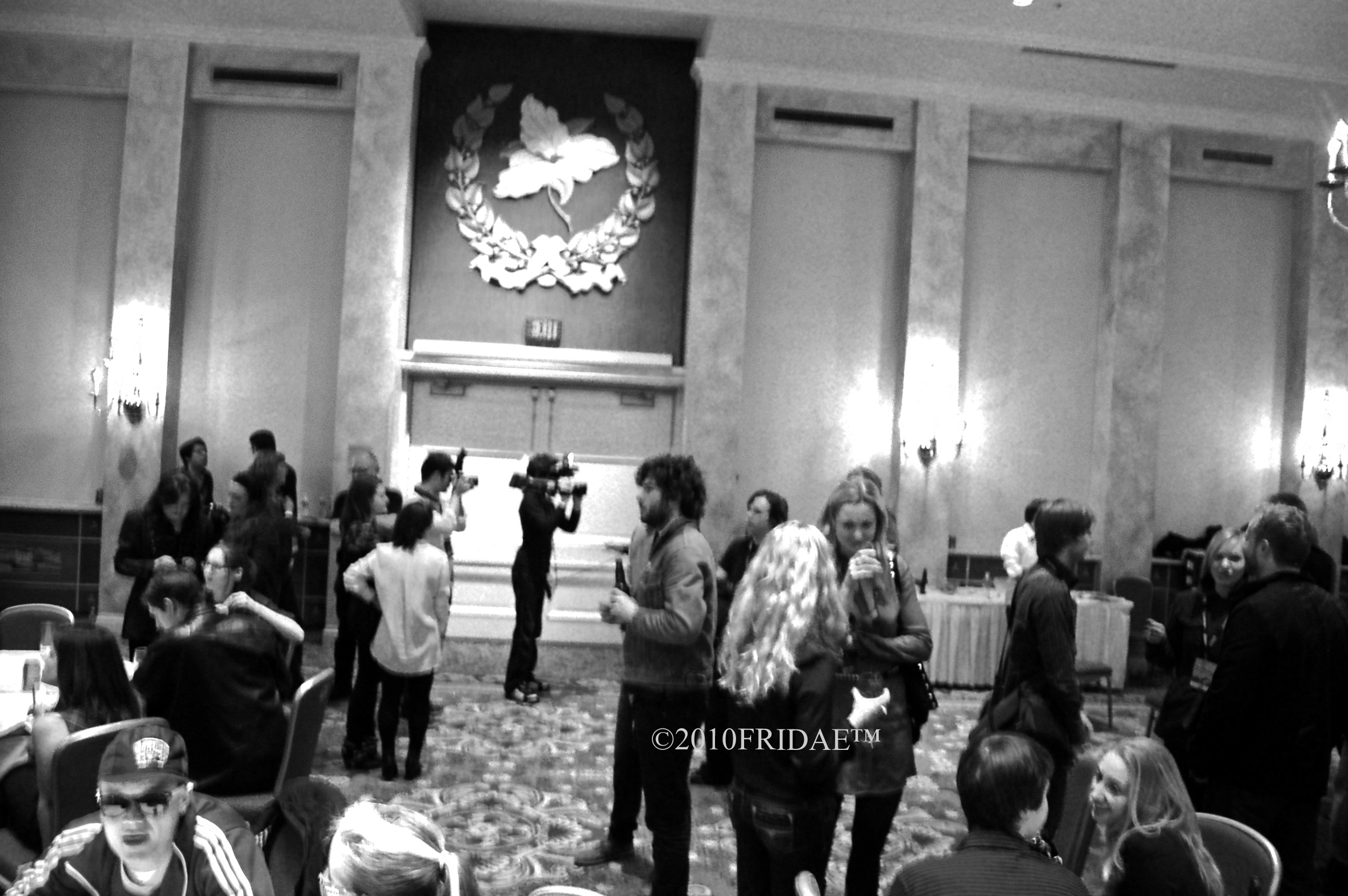 The funniest thing I remember from that particular event was at the end. The whole room launched at the stage, I had to go on the stage to escape getting crushed from the rush. Everyone wanted to touch, talk and get a picture with Slash; it was far more insane than Gene’s Q&A. I’ve seen it hundreds of times before with other artists but it still amazes me how uncivilized and wild people really are. It’s all about the balancing of Mind, Body and Soul, not one over the other. Back to the funnier stuff, there was this extra trashy woman in her mid forties, possibly older with super fried bleach blonde hair and feathered 80’s bangs. Basically her tragic garb and facepaint made her look like she just rolled off the set of Trailer Park Boys! This woman was pushing people hard-core trying to get to Slash, as was everyone else. Tried to film the madness but it was too crazy to get any viable footage, two seconds after I put my camera away I look up and I see trailer geez staring at me like I was wearing her clothes. That wasn’t the last I saw of her, later I went out for a smoke and voila…She was staring at me like I stole her money, only this time she had her daughter with her, who joined in on the staring session. The feeling I got was that the daughter is an “aspiring artist”, I feel sorry for her, the spitting image of her trailer trash stage mom 20 years younger. Picture “Kelly Bundy” uglier, cracked out with super ghetto “Shoppers Drugmart” extensions. The “Trailer Twins” weren’t the only ghetto weaved Shoppers blondes I ran into that day who were acting like they wanted to start something! I swear! There are way too many insecure Britney-abee’s trying to initiate drama with me just for existing. I don’t know what their damage was or is but the whole thing seemed very bizarre, however they did make me laugh adding to the many moments of amusement. Countless laughs during CMW, fun times with amazing people as always!