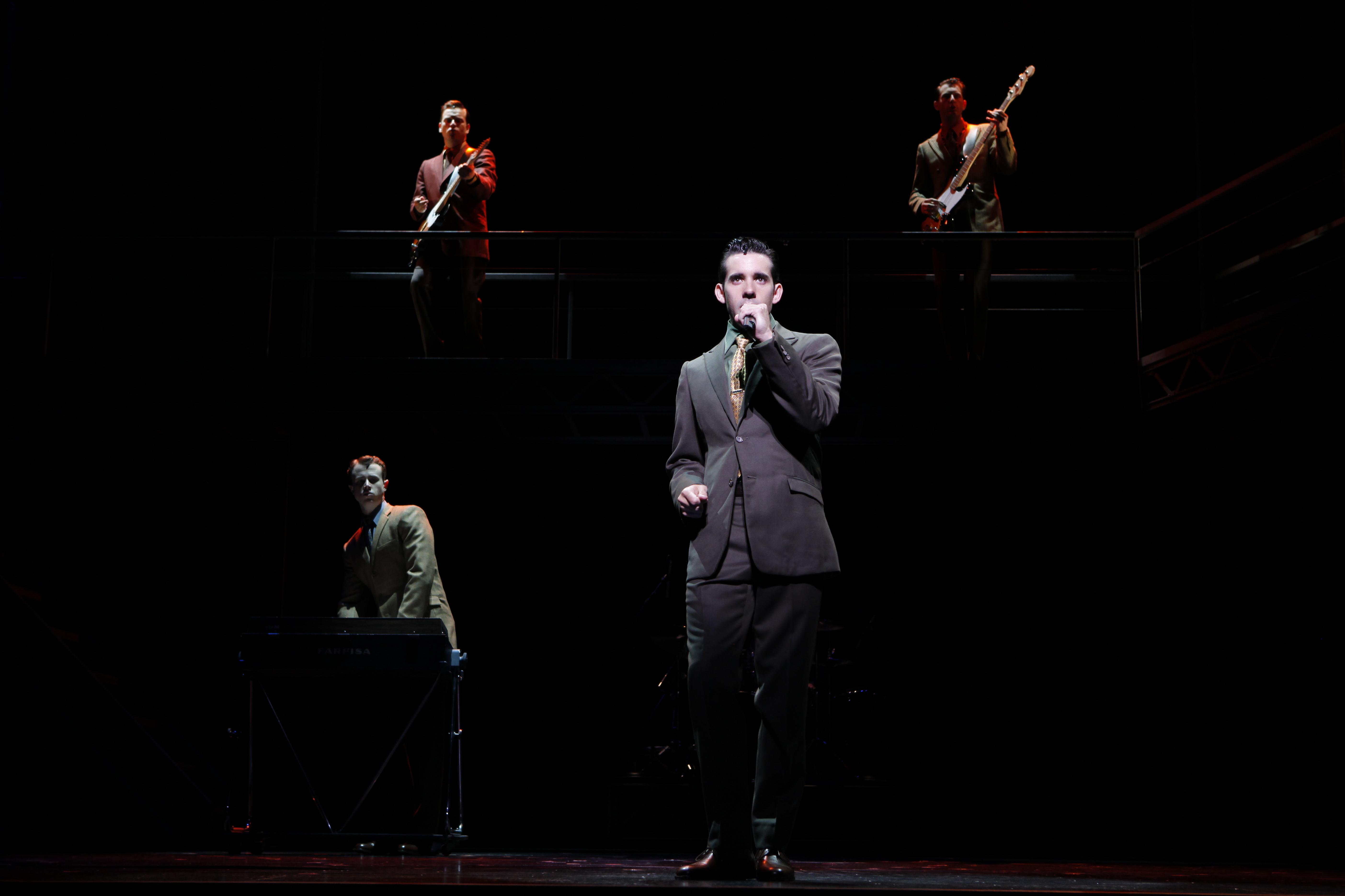 PHOTO CREDIT: top left – Daniel Robert Sullivan as Tommy DeVito, top right – Michael Lomenda as Nick Massi, bottom left – Quinn VanAntwerp as Bob Gaudio, centre – Jeff Madden as Frankie Valli by Joan Marcus