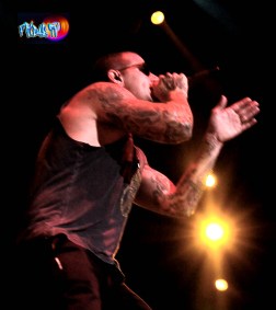 Avenged Sevenfold entertain thoroughly, the music and performance is equally as spectacular as the pyro, they should have headlined this tour. There was still another band to hit the main stage for the Rockstar Uproar Festival and that was the headliner ‘Disturbed’. They are David Draiman – Vocals, Dan Donegan – Guitar, Mike Wengren – Drums and John Moyer on Bass. I haven’t listened to Disturbed in years! I couldn’t even remember any of their tracks, the first few were off the new record ‘Asylum’ which just dropped August 31st and is sitting at number one on the charts. It was not a problem at all, it gave me a chance to hear the new material live, they started the set with a filmed skit of an Asylum where front man Draiman is having flashbacks and eventually escaped the Asylum running away. As the skit played the fog set in and out popped Donegan shredding the axe on a sick solo, timed perfectly with Wengren and Moyer giving him a beat to riff with. The track was ‘Remnants’ from the new record ‘Asylum’, the skit continued to play Draiman was running to escape from the asylum eventually he ran on the stage. This kind of reminded me of the Backstreet Boys intro but when David started singing and the music picked up guitar speed that’s where the similarities ended.