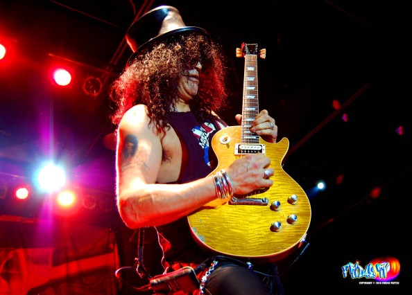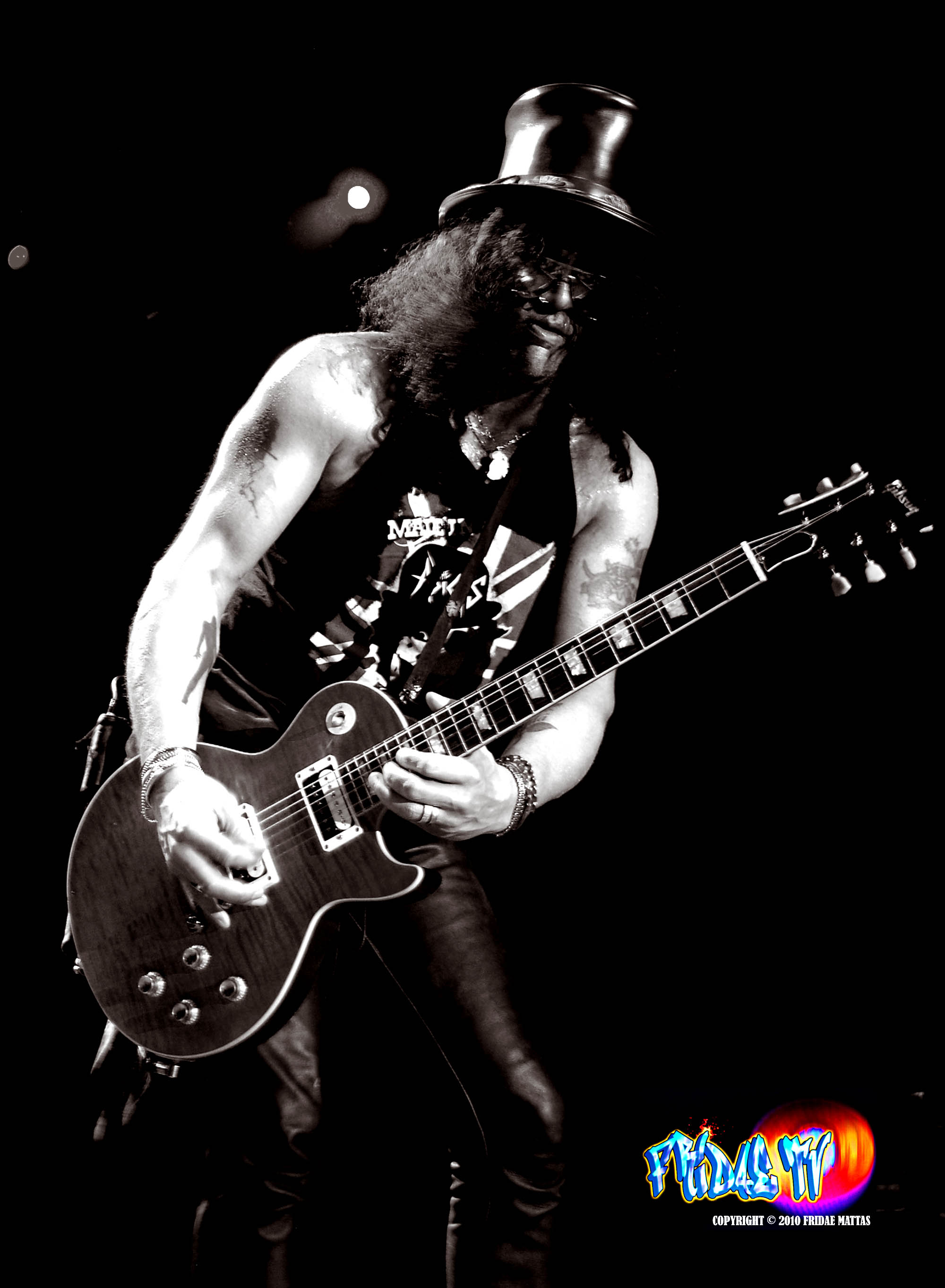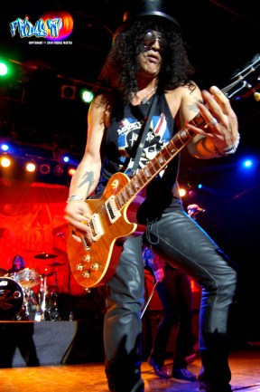 September 10th was the day, Kool Haus the venue and Slash…The Artist. An Electric Guitar or Guns N Roses comes to mind when one thinks or speaks of Slash, If there wasn’t a guitar somewhere in your thoughts, you are lost. I have never seen Slash or Guns ‘N Roses live, yet this wasn’t my first encounter with Slash, I captured some of his interview at Canadian Music Week back in March. It was madness; the hardest filming ever, you can watch the CMW jibbers here and here. For those that don’t know who Slash is, where have you been? Chilling in the caves with Osama? Slash is the modern day Jimmy Hendrix with a razor edge, the Godfather of Guitar! Slash was born Saul Hudson his claim to fame was being the Lead Guitarist of popular rock band “Guns ‘N Roses”, he also had ‘Slash’s Snakepit”, is co-founder of the band “Velvet Revolver” and currently “Slash” the solo artist.