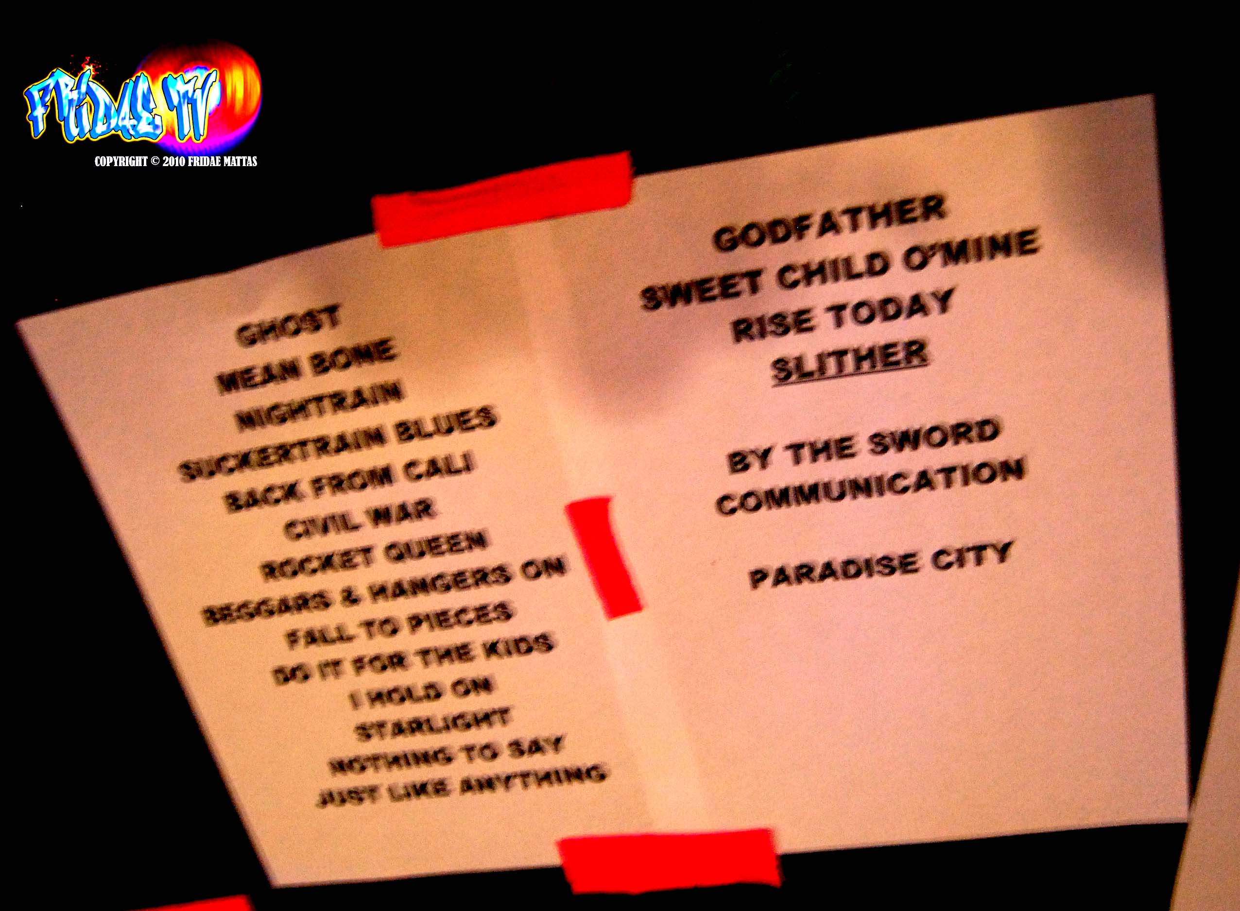 The show was great but honestly I would have much rather listen to Slash and band play the songs without the vocals. The closing track was ‘Paradise City’ which I missed because I had to leave, my ears were hurting and my head was starting to pulsate from the overdose of larry’s voice. Majority of the crowd stayed to see the sold out show, I’m surprised it sold out because across town there was another big show at the Molson Canadian Amphitheater where ‘Kiss’ was playing. Go see Slash live if you can! I definitely made the right choice, very happy with the outcome! Huge thanks to the amazing people at Live Nation!