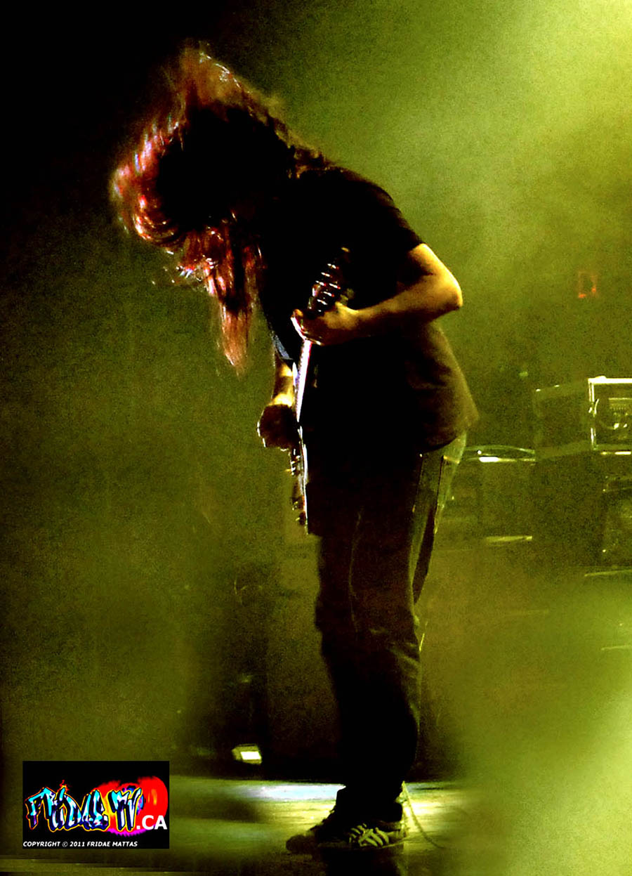 It was snowing like crazy in different parts of the city and because of the storms I missed the opening bands Elias and The Envy. It’s okay though you can check out previously filmed tunes of The Envy on FridaeTV but sorry Elias band next time! Finger Eleven kicked off their set with a new track ‘Any Moment Now’ from the new ‘Life Turns Electric’ record. The track is a high energy song, perfect to open a set with. Vocals were a little pitchy during a few tracks within the set but Anderson did deliver a more refined vocal performance this time around compared to the set I last saw at Trudeau Parks ‘Rock ‘N The Park 2009’. Scott genuinely feels the emotions of the song they are visible on his face but I wish there was more movement from him because he pretty much just stands there for the whole set, it gets a little boring. Thankfully the amazing skills of Rick Jackett’s Axe Ballet keeps the energy to a maximum giving the crowd a show they will never forget nor will they ever see a performance like this from another guitarist! I call him the ‘Axellerino’ he is truly one of a kind!
