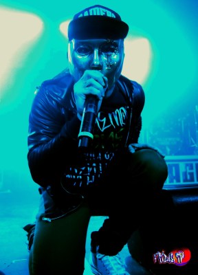 They opened the thirteen track set with their hit tune “Undead”, I actually really like the beat of that track, the lyrics eh they are honest but need work. When they first popped out on stage I was so lost because I had no idea who was who and the fog was taking over. There are six in the band and after a few tunes I was getting more familiar with their masks which looked spectacular when the light reflected off of a few making them glow. A few of the members apparently were in gangs, have been in and out of the bin and the masks they wear are for hiding identities. In reality, they wear the masks for aesthetic purposes so the fans can have individual character types to identify with. The masks are usually worn every show for the first few songs and then they take them off. Recently the masks were pimped out and look eight thousand times better than the ghetto ass Jason masks they originated with.