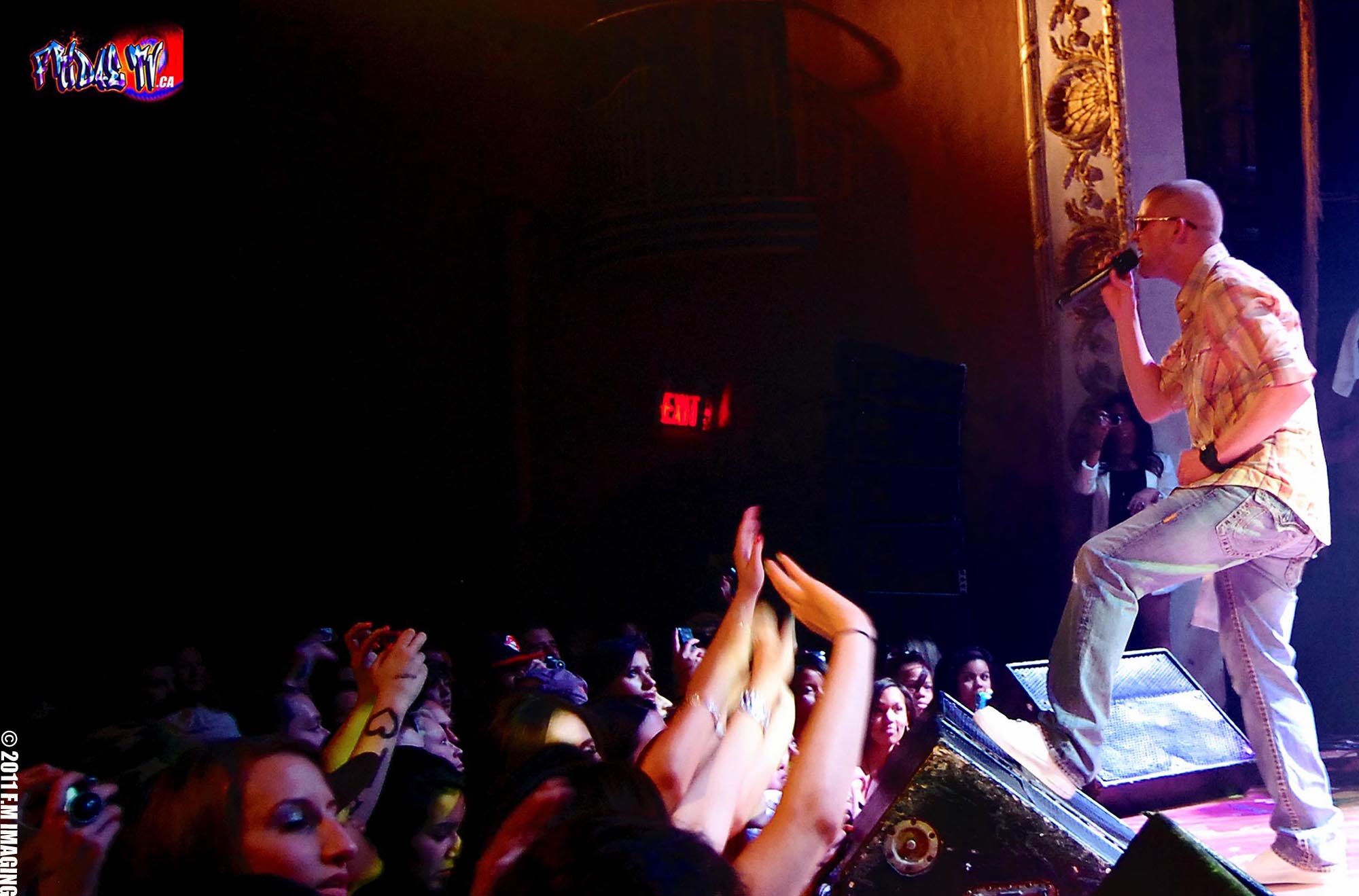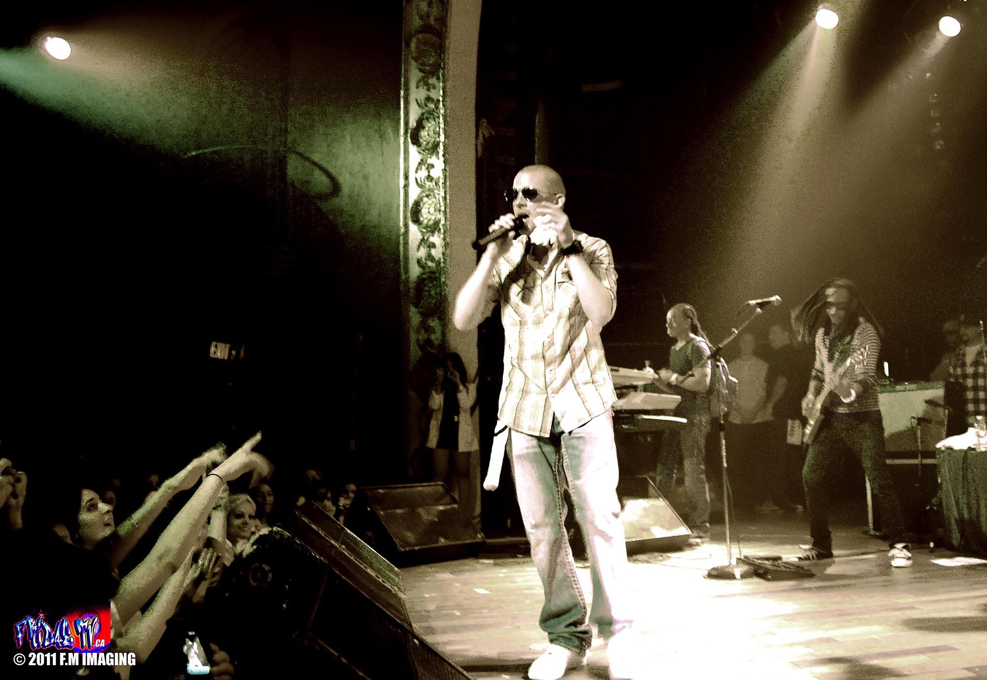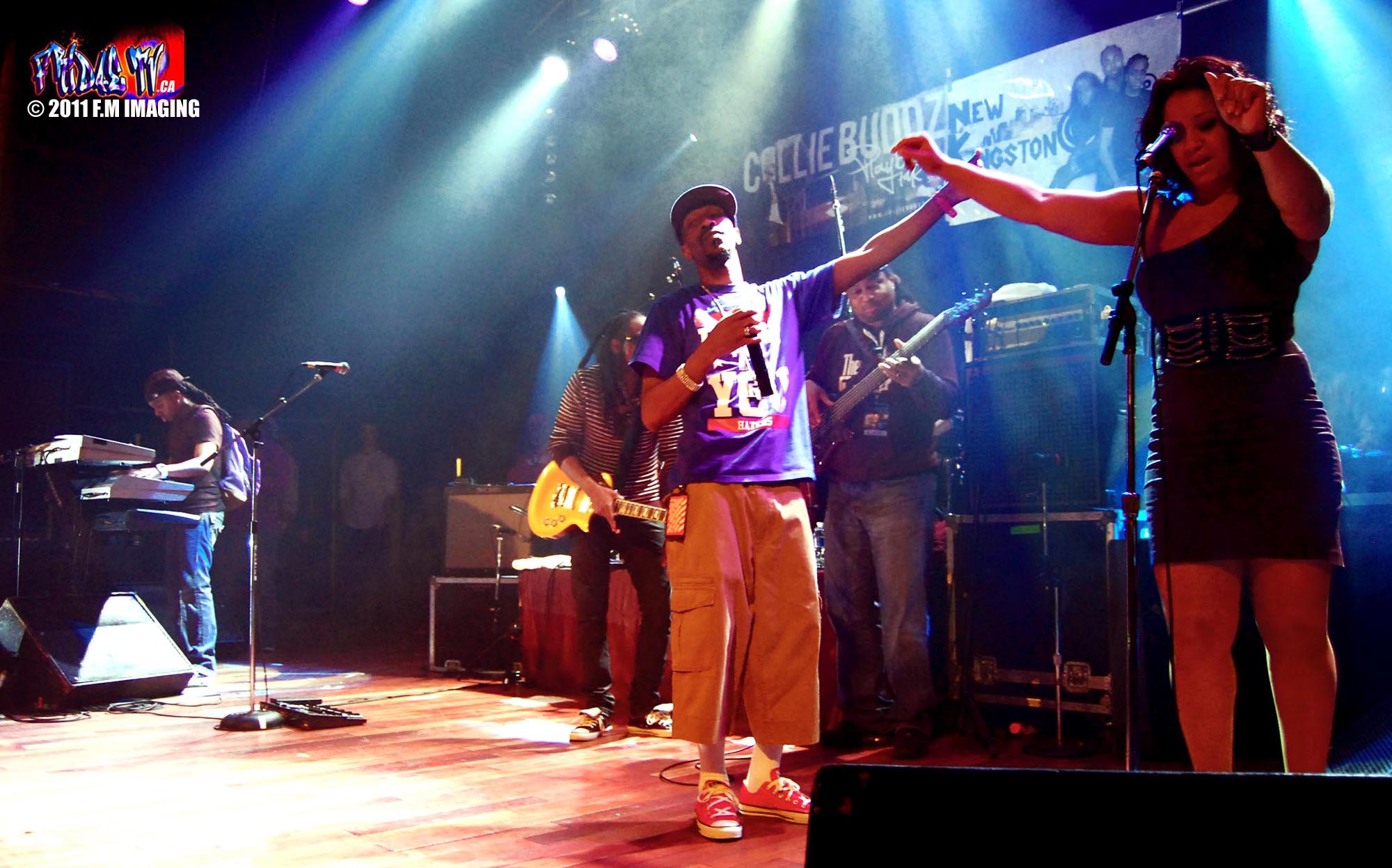 After fifteen minutes of trying to hail down a cab it was accomplished, I swear it was easier to get one in NYC and the streetcar still didn’t come as I got into the cab, absolutely incredible but I finally reached the venue and it was crazy! As I walked in, the paramedics were carrying a kid who passed out from heat exhaustion because it was so hot in the sold out Opera House. I was a little scared because my intuition was telling me I was going to be in the front lines for sure and some drama lay ahead! My instincts were dead on…Soon after the fabulous Female at the door handed me my media pass she warned me it was really hot in there, people were dropping like flies, she also advised me to take off my jacket and find my way through the crowd, lastly she wished me Good Luck”! I needed it, my crowd claustrophobia was kicking in, they didn’t have a media pit; nothing to separate media from fans but on the bright side Collie’s set was to start in five or ten minutes. A little annoyed that I missed New Kingston band but at least I caught a minute of Los Rakas as I lithely made my way through the super crowd trying to find a unobstructed area to shoot from.