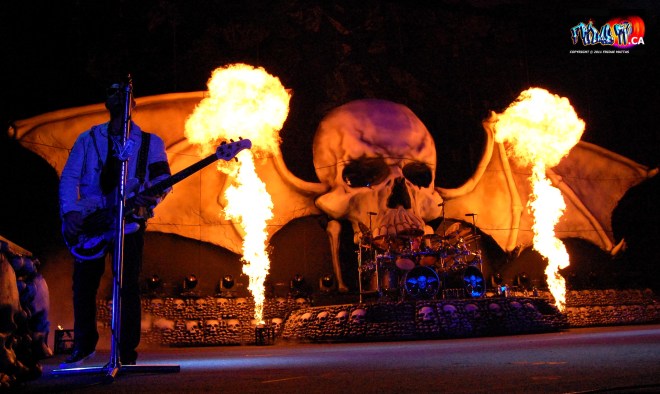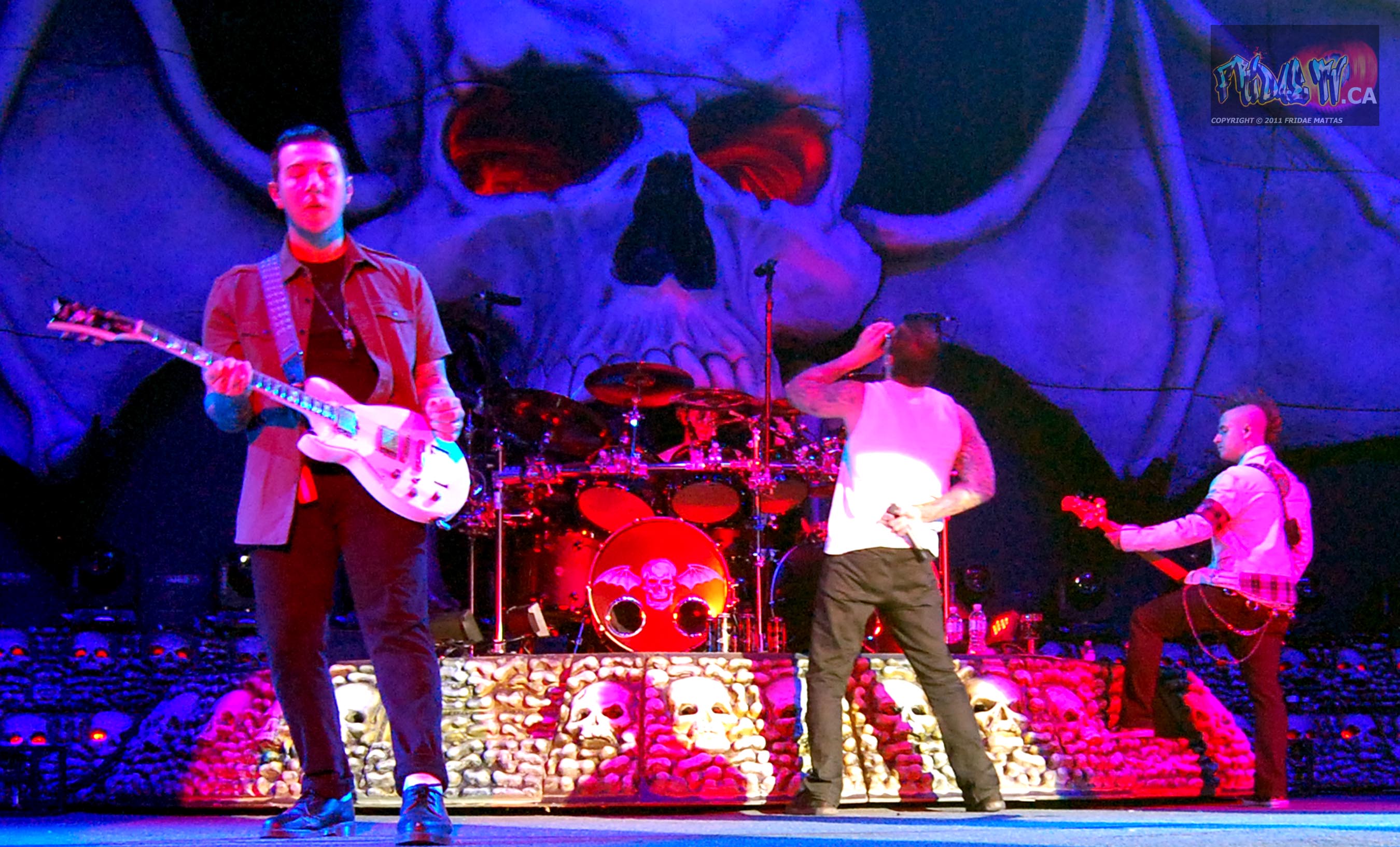 For the finale during “Unholy Confessions” the wings of the skull bat were set a blaze as was the top of the skull. It’s always amazing when there are flames flying everywhere, absolutely fantastic to watch. I am kind of a pyro, I love playing with fire. This year Mike Portnoy was not the drummer because he was just temporarily filling in for Avenged Sevenfold’s lost brother “Jimmy ‘The Rev’ Sullivan’. They did however find a newbie, Richard Arin Ilejay as the beat master for this tour. His future with the band is still undecided but for now the kid does some pretty good work handling those sticks. Avenged Sevenfold put on a show not many will be able to top but Three Days Grace took it home vocally, they had home-base advantage.
