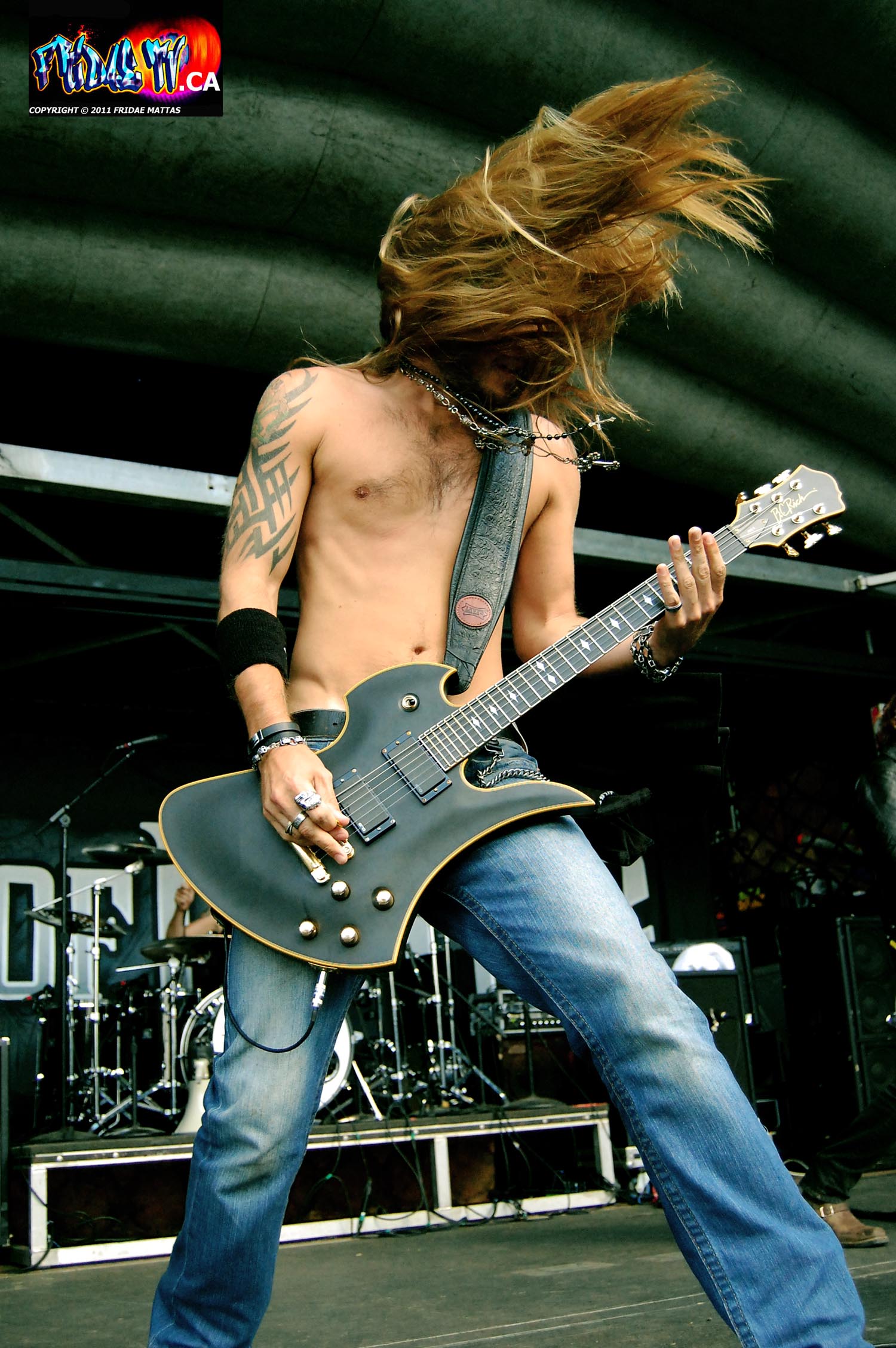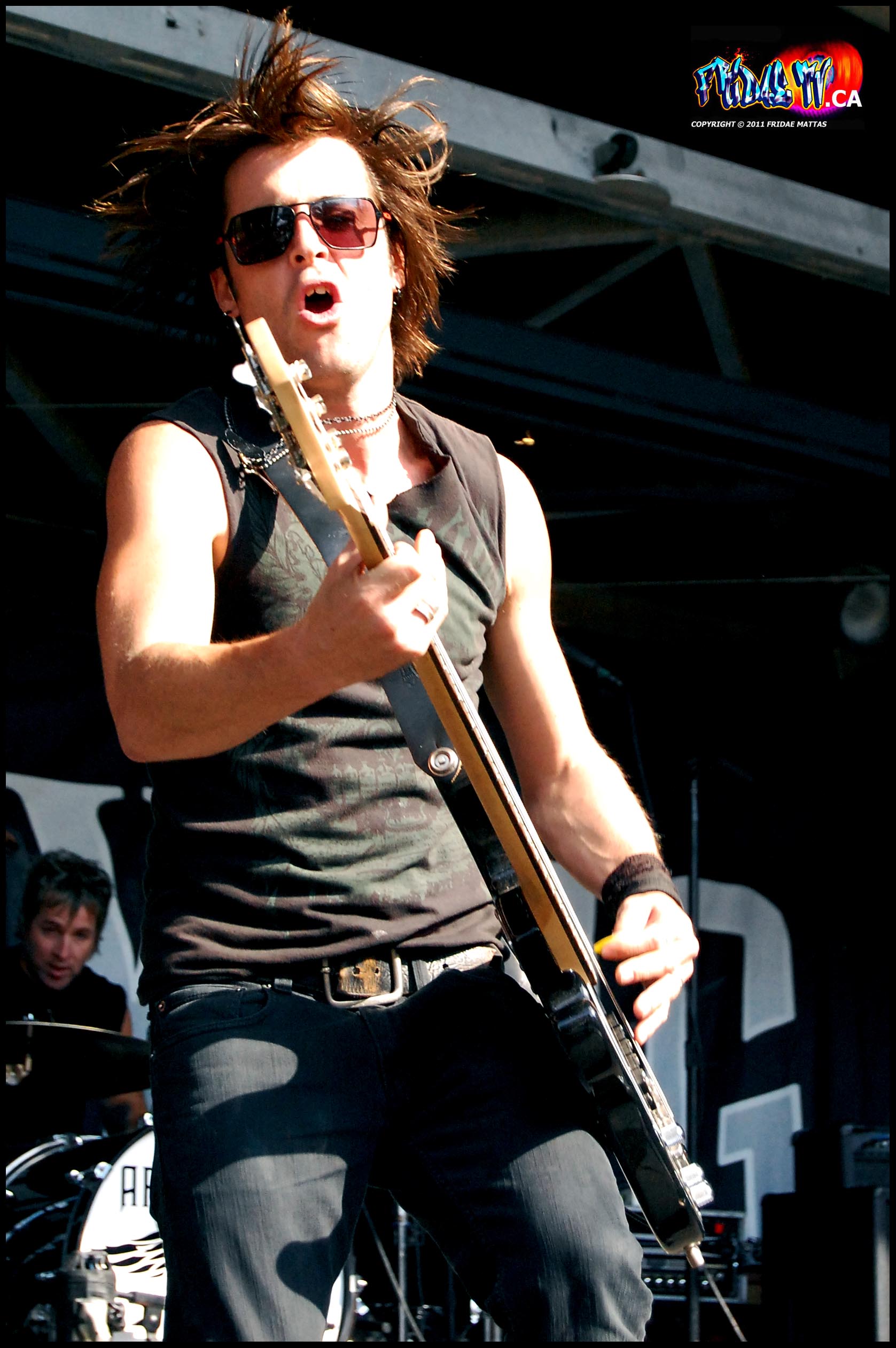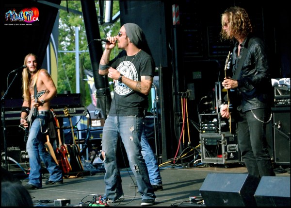 First band on the Jager Stage we caught was Art Of Dying, as we climbed through the crowd to find the media pit entrance we thought we would miss our three but made it to the stage just in time. Pay attention if you haven’t already heard of Art Of Dying, they are a band you really need to check out if you like real rock and roll. At this time AOD consists of five; Jonny Hetherington – Vocals, Greg Bradley – Guitar, Jeff Brown – Drums, Cale Gontier – Bass and Tavis Stanley – Guitar. The music is melodic alternative post-grunge rock. They released their major label debut record ‘Vices and Virtues’ on Intoxication/Reprise/Warner in March 2011 quickly climbing to number one on the Billboard Heatseekers chart. Many of the tracks on both records are the same just redone and in my opinion, I liked the sound of their first self titled LP ‘Art Of Dying’ better. Although the new LP has a fantastic duet to one of my favorite songs, the record is a little over produced.