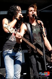 Drums are always solid because Jeff Brown is a sick drummer, he knows his stuff! People don’t give drummers enough respect; they have the most equipment to set up and take down and are the beat keepers, a very important piece of the puzzle! Greg and Tavis on guitars shred those strings to the fullest; they switched it up making the most of the medium sized stage keeping the crowd entertained. Of course Tavis was topless and he matched in nakedness with his wicked cool silent skeleton guitar, probably the coolest looking acoustic axe ever. Harmonies sounded flawless, this band is proof that when you take constructive criticism and apply it, magic happens! The live sets keep getting better every time and this was the first time I’ve seen them on a larger stage where they made themselves right at home. The performance would have been even better if they played the main stage where they had even more room to roam.