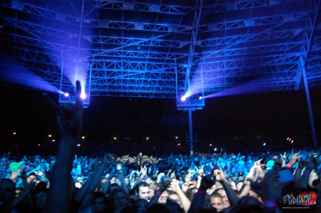 The performance was a pleasant visible progression from last year’s show down the road at The Direct Energy Centre. Vocals were still a little pitchy but they are strengthening, Gontier also plays the guitar for some of the tracks and flies around to entertain the people. They didn’t have any pyro for this set which was okay because from what I saw the crowd was impressed by the constant high energy vibe. After playing one of my favorite tracks ‘I Hate Everything About You’ they played ‘Home’, another track I like but they made the tune even better by throwing in Eminem’s ‘Lose Yourself’. The whole amphitheater went wild, the guys in the VIP box just a few feet in front of me were hugging it out and chest bumping each other as we all attempted to rap along with Adam.