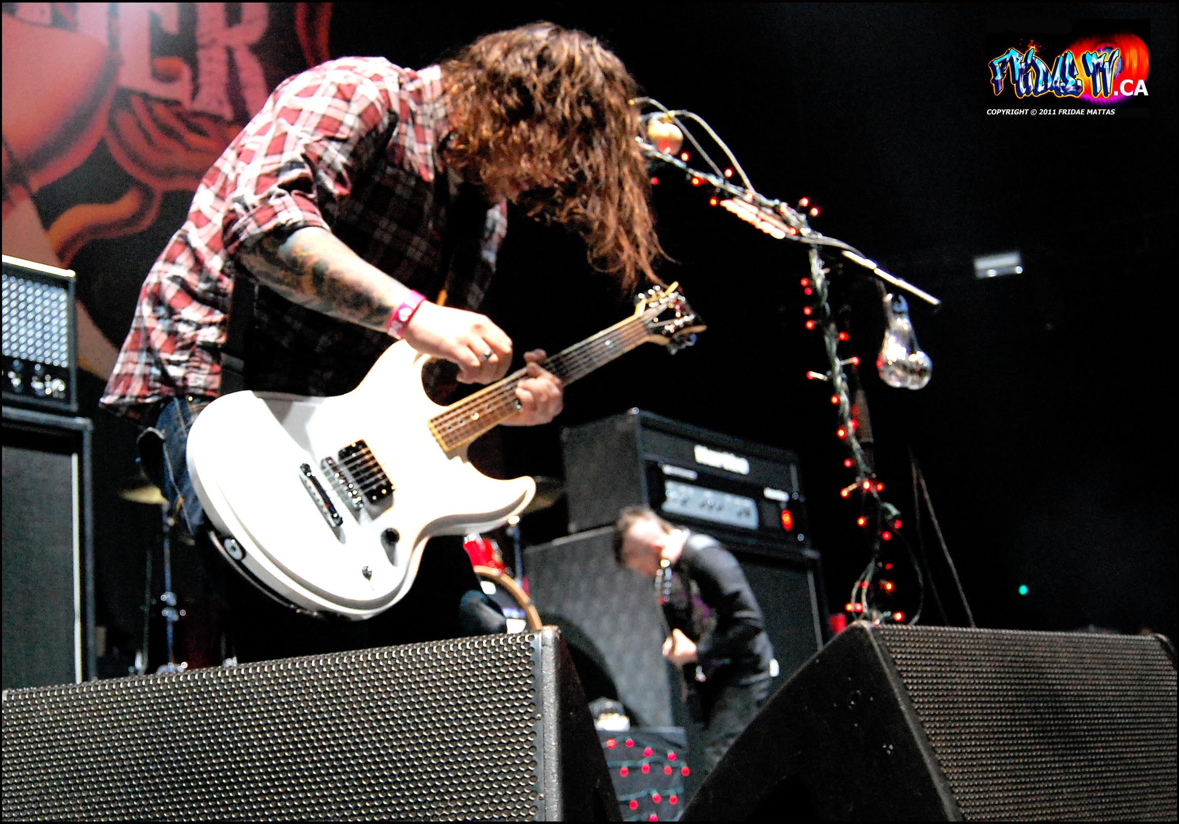 Protest The Hero front man Rody Walker was very vocal about current Toronto mayor, Rob Ford by making comments like “I hate Rob Ford!” Don’t worry Rody, most of us totally agree with that one. I guess his belly lint eating during ‘Bone Marrow’ gave him a burst of jibbers, but it’s true, who actually voted for Rob Ford? PTH put on a decent set, not the best I have seen them but it was close, vocally it was a little pitchy and diction needs work but I do admire Walker’s range and stage performance he did what a lead vocalist should, entertain the crowd. I wish Guitarist Tim Millar would put more effort into playing, it didn’t look like he was too excited to be on stage, he just stood there most of the time strumming the chords on his end of the stage (stage left, audience right). If you don’t like it, don’t do it, there are many guitarists out there who would trade spots. Thankfully his fellow band mates and lead guitarist Luke Hoskin brought some life into the performance, still have not seen any guitarist perform like Finger Eleven’s Rick Jackett does, he is phenomenal. If you haven’t seen either Art Of Dying or Protest The Hero live or have listened to their music, you certainly need to.