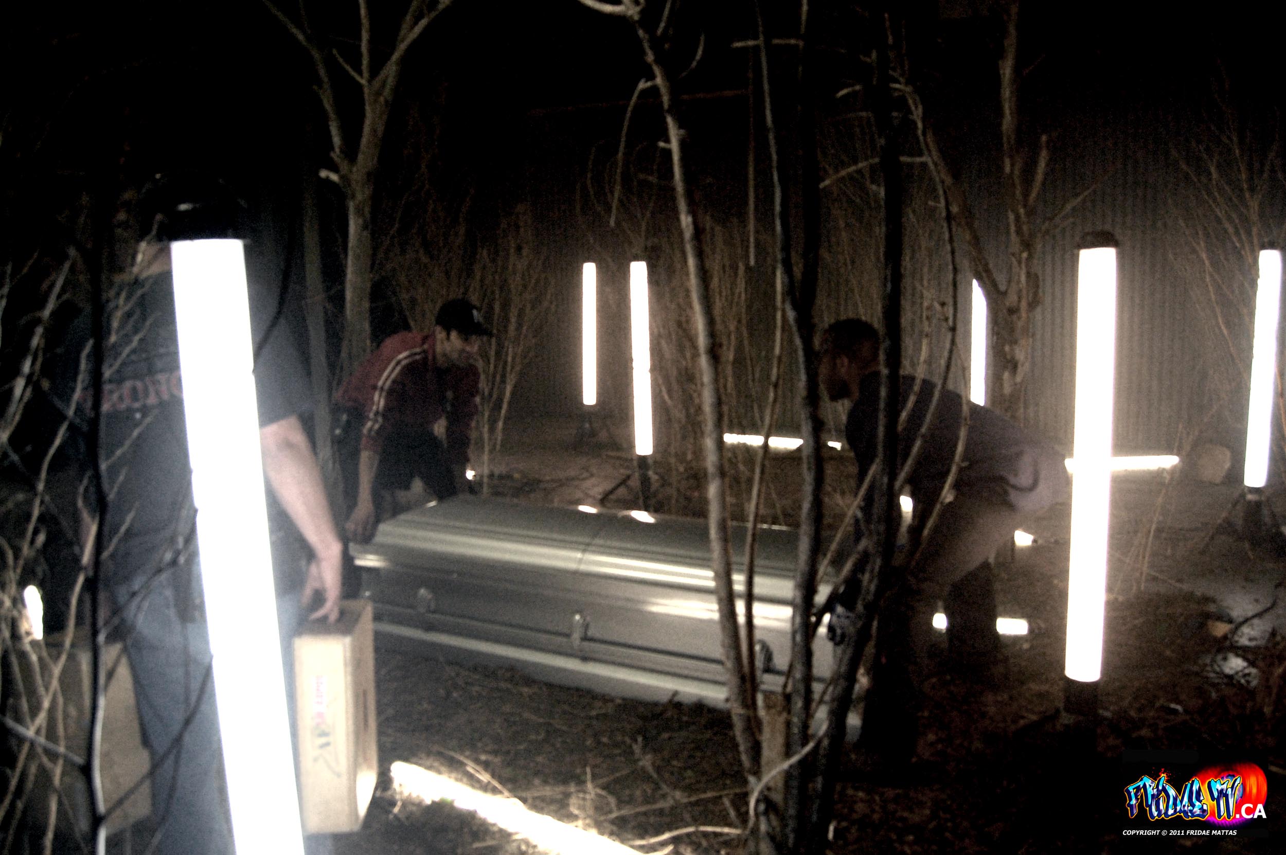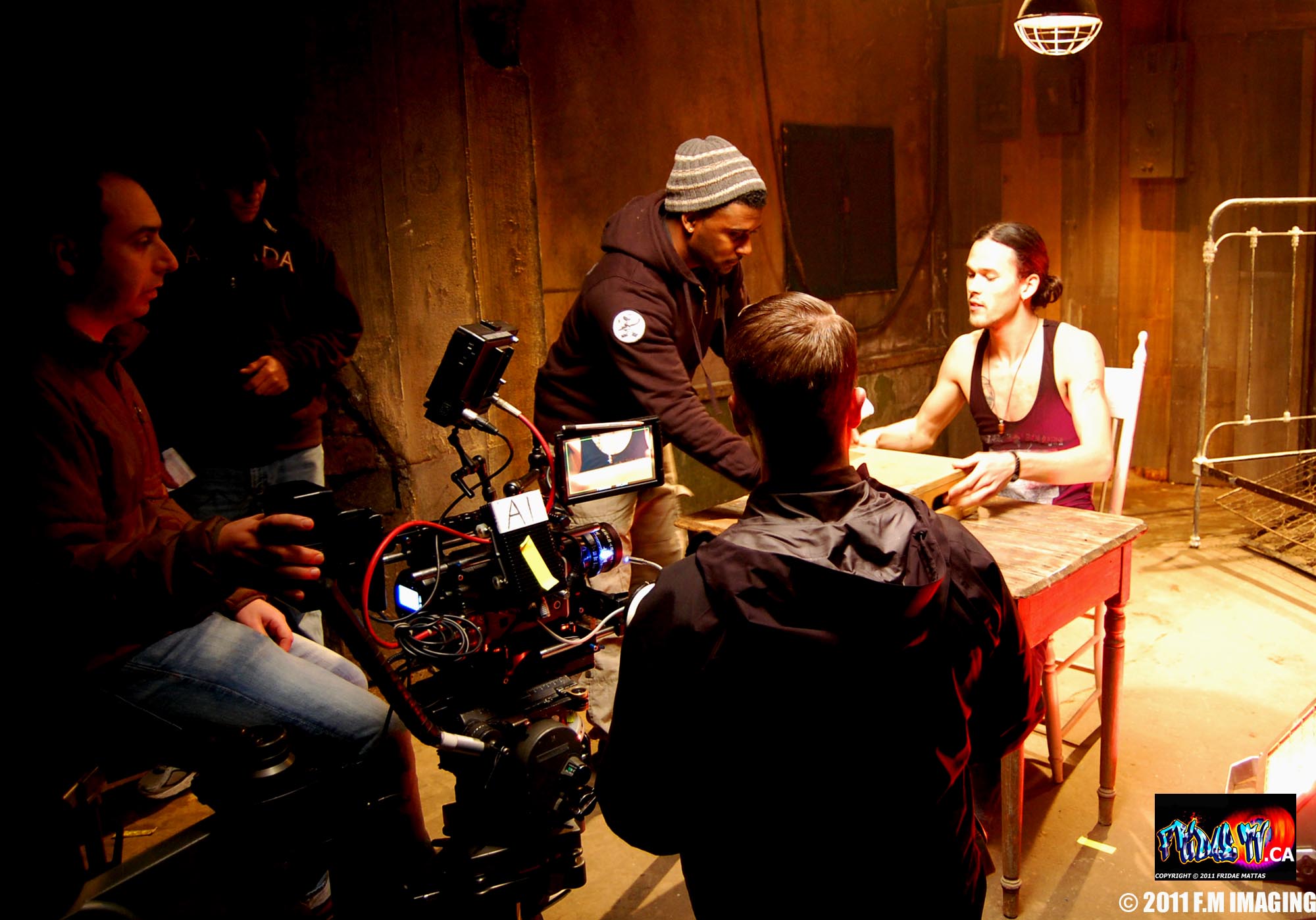 April 10th 2011, I happened to be on the set of the video shoot for ‘Gone’ Featuring Justin Nozuka, RZA of Wutang, Kobra Khan, James Black (Siick Guitarist) and Rich Beddoe (Incredible drummer!) of Finger Eleven, basically a rainbow collaboration of artists for this track. The song itself was produced by ABC production’s master Producer AliKat who has worked with artists like Snow, Cutty Ranks, Master P and of course his homeboy Kobra Khan who wanted this collaboration for his album. Rza of Wutang is saying this is his tribute to ODB (Rest In Peace), this is a great song for anyone that has lost a loved one. The building used as location was super creepy because it was also the same location for a few of the SAW films. My heart goes out to all who were in the water for long periods of time in the dungeon, shot after shot in ankle high water.