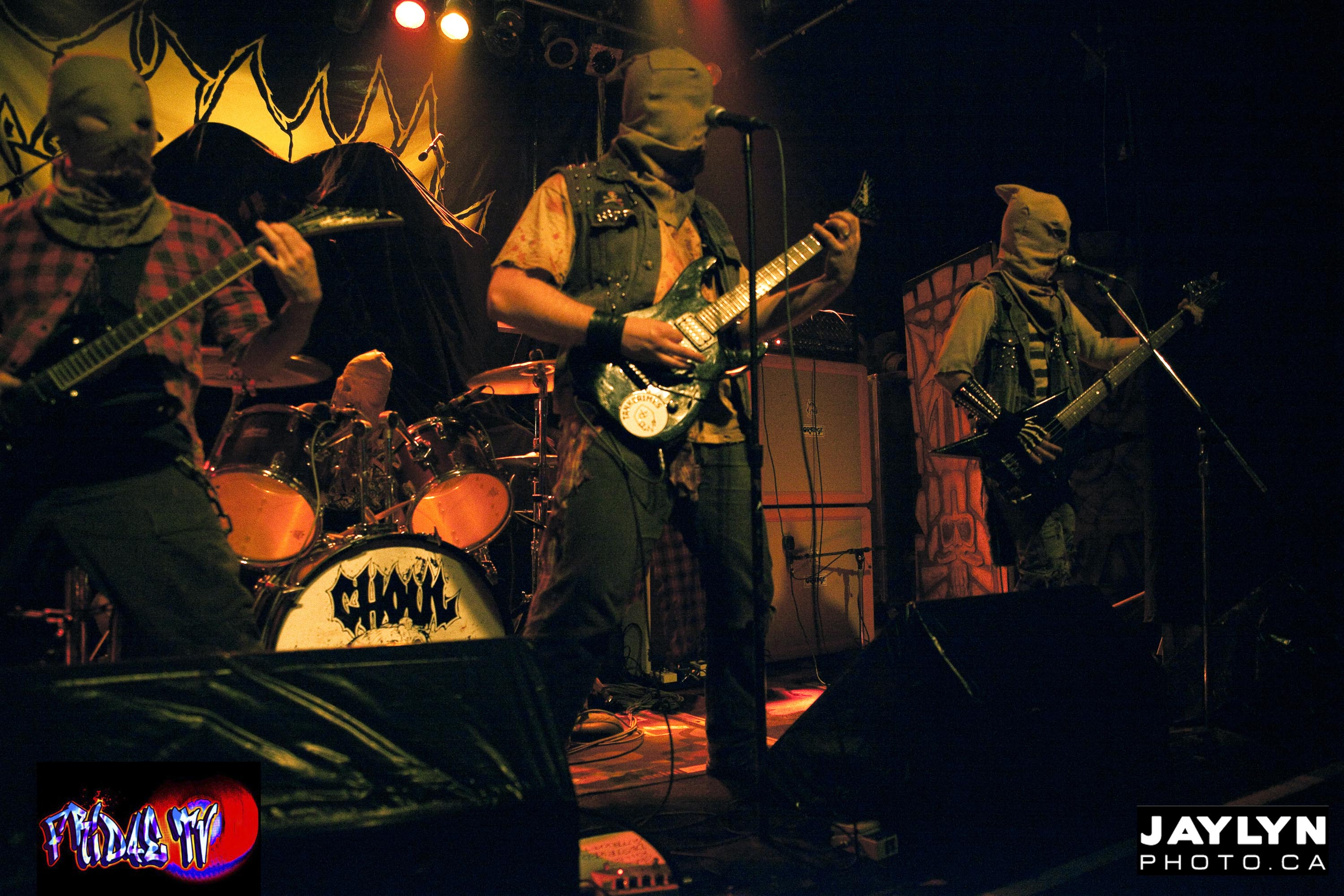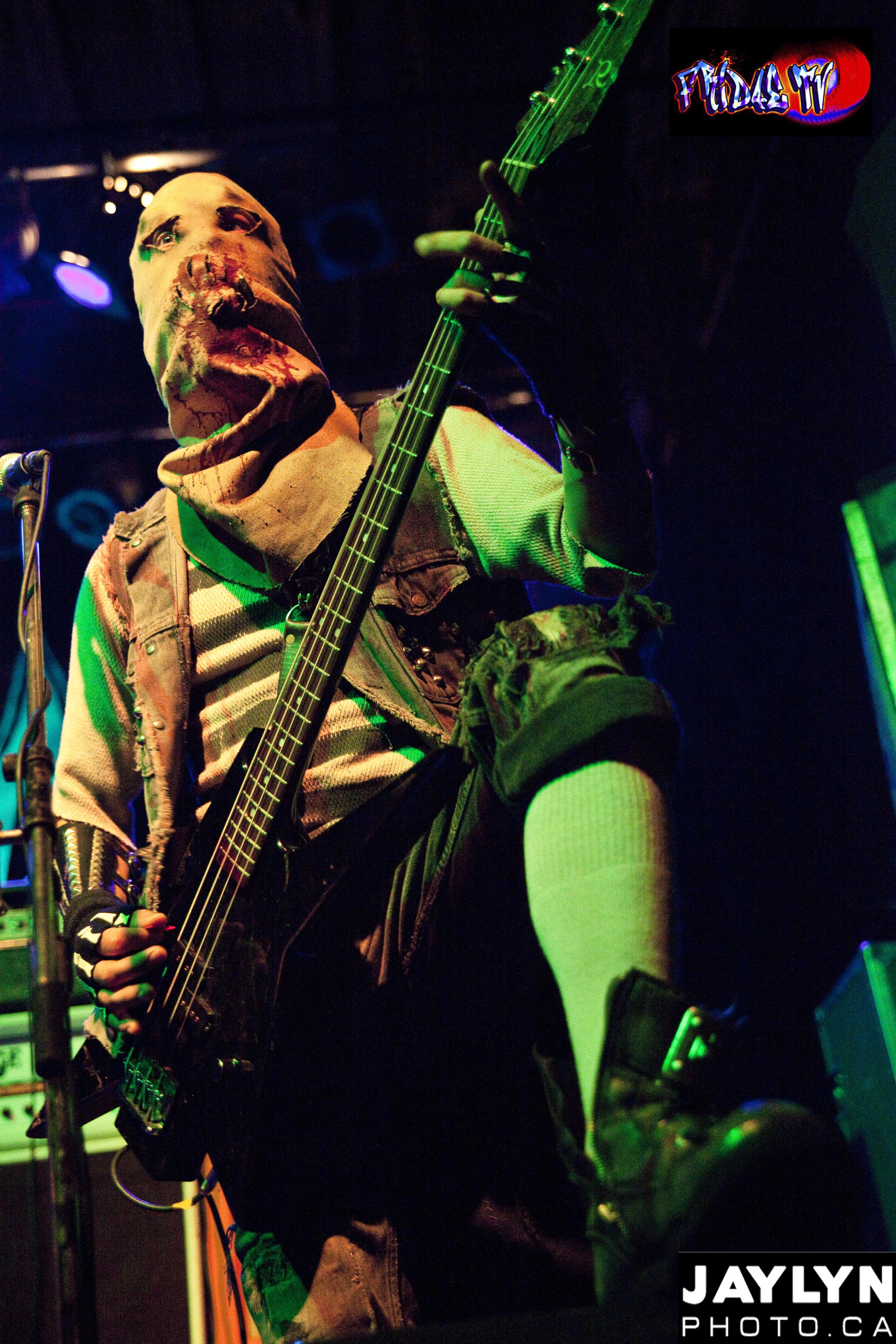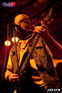 One of the Supporting acts was “Ghoul” a four piece band based out ofCalifornia, But Hail from “Creepsylvania” were on the stage first. They Commanded people’s attention by having each member wear a Scarecrow mask as they went into their set. The band seemed tight even though the sound was a bit off, but this is Thrash metal and people didn’t care. Never breaking character, Digestor (Vocals) would Yell to the crowd “We love the way you dance, Keep Dancing” then broke into a dirty Metal riff (Graveyard Mosh) . The middle of the room began to stir and then it started…MOSH PIT! The band was feeding off the energy of the crowd giving them an adrenaline boost and they yelled “We need a sacrifice”!