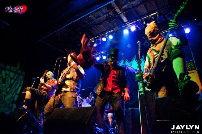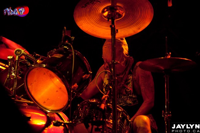 Included in the monster crew was this Giant horse like creature named “Jagermonsta” and once its head was loped off, Jager was shot into the crowd. Even a “Snooki” was stretched out on a rack and had her insides ripped open and with each kill the crowd grew louder and louder, demanding more. For an hour and half that’s just what they got. Plenty of blood, sweat and for some of the smaller frail fans, tears.