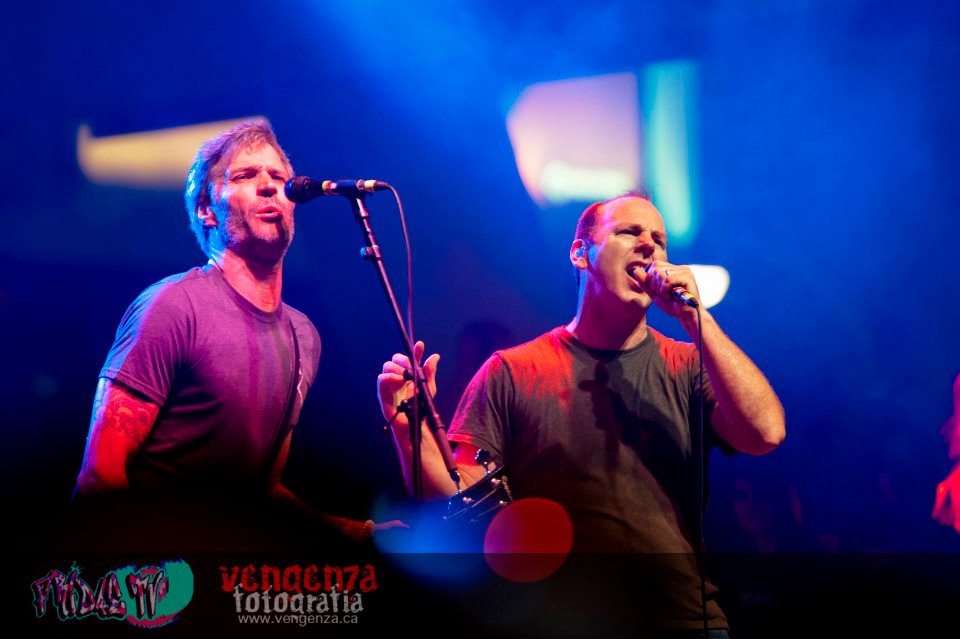 After fueling up at the Eaton Centre with some delicious food we headed back to check out No Use for A Name. One of two punk bands on that day’s line-up from California, No Use put on a great performance for old fans & new. The pit filled quickly right after for Good Riddance. It’s no surprise since the band played a farewell tour in 2007 after almost 20 years together. The band finally reunited February of this year and NXNE was one of their first shows together since their breakup. They put on a good show and got the crowd pumped for Bad Religion. I made a small mistake leaving the front of the pit to hang out with some friends because I found making my way back was more difficult than pulling out teeth! It took three songs before I was close enough to the front of the stage to take some shots without being in the destruction zone that was the mosh-pit.