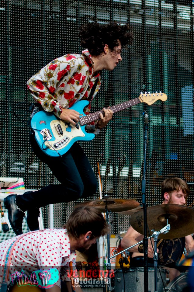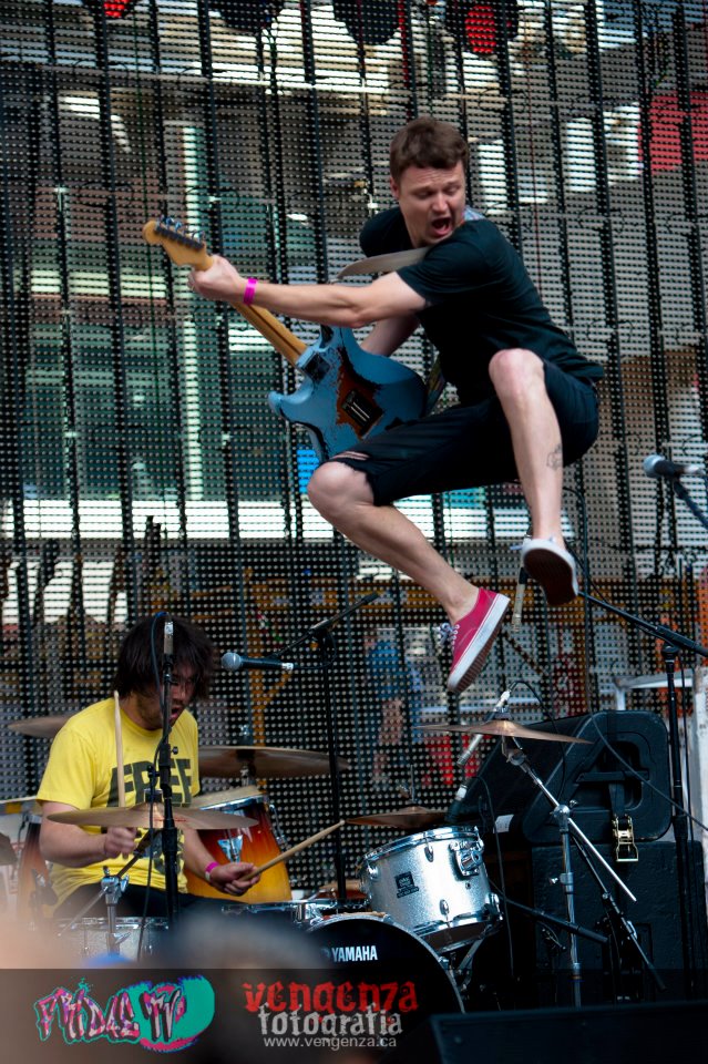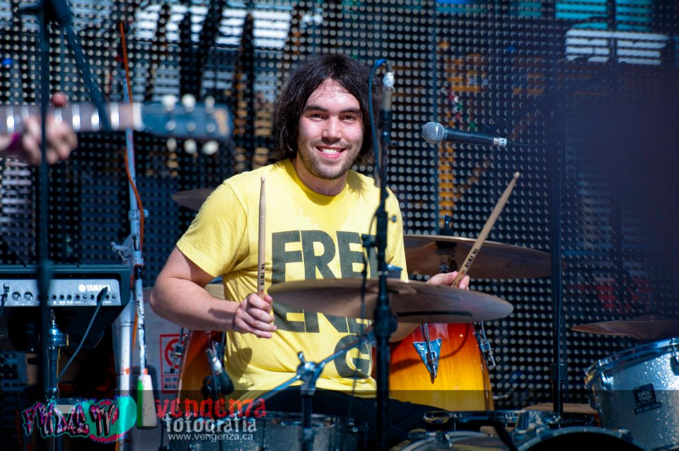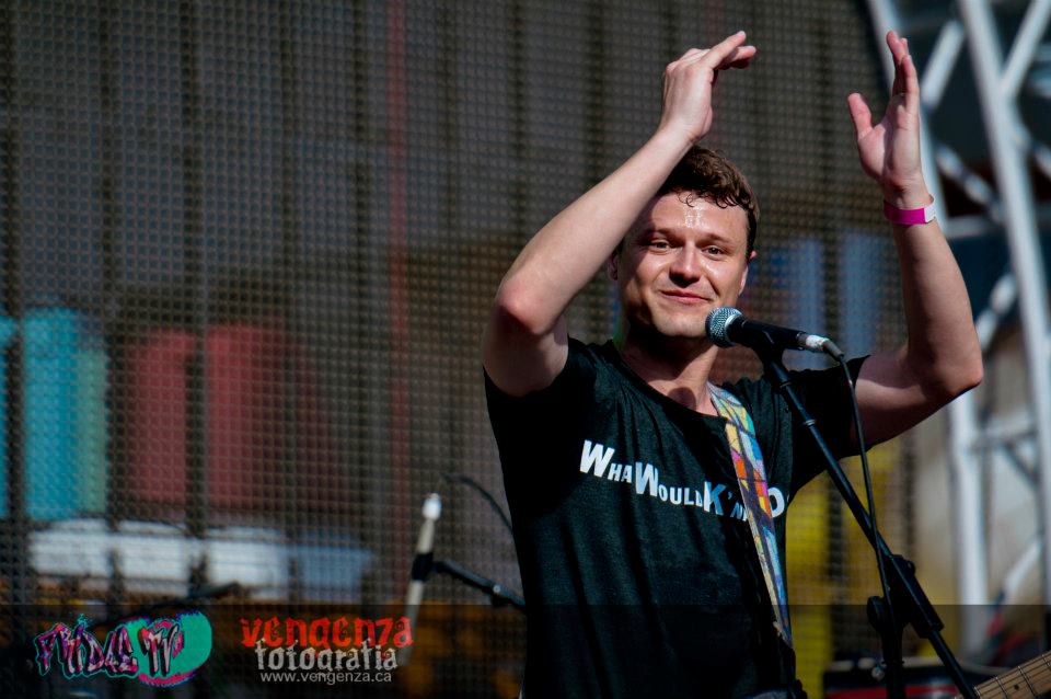 After putting almost three thousand shots on my DSLR on Friday night, I was glad to take it easy on Saturday. I headed down to see Hollerado and Oberhofer at Yonge and Dundas square. Hollerado always put on a great show, Menno Versteeg always manages to jump of the drum kit which I got a sweet shot of, and they’re always jumping and moving around and great fun to watch. Menno reminisced about his grandfather and even paid respects to The Flaming Lips by only firing off one confetti canon. I felt bad for the band though it was so hot that day and they were facing the sun for their entire performance. After Hollerado the crowd got another treat with Oberhofer. Lead singer Brad Oberhofer definitely ruled the stage with his presence and funky dance moves. I hadn’t heard of them before but they were actually quite good and if you like Hollerado you’ll probably like them to so check them out.