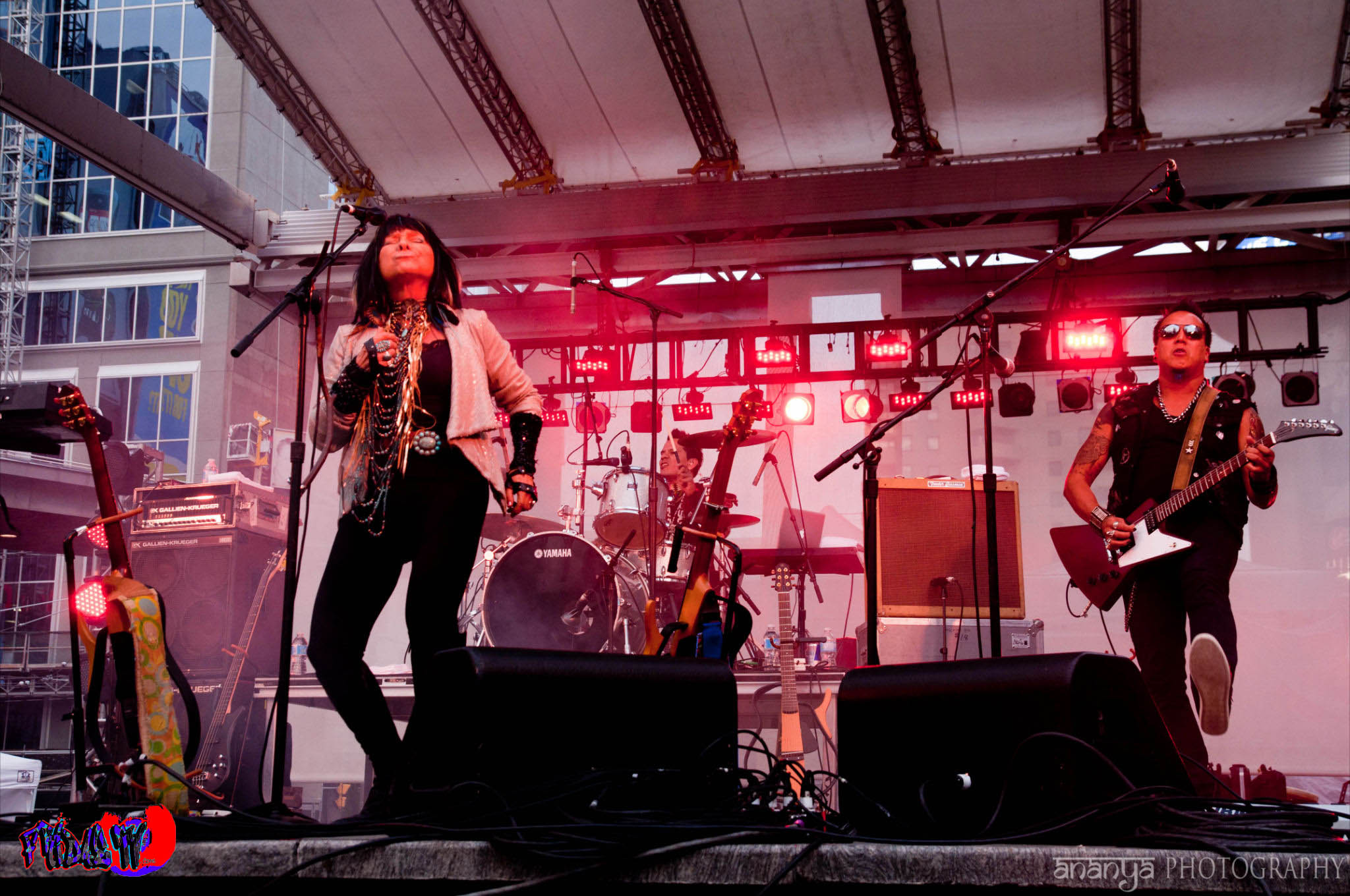 Last week I had the chance to see Canadian Aboriginal legend Buffy Sainte – Marie rock the stage for free and the crowd at Yonge – Dundas Square in the beautiful city of Toronto was enjoying every minute. She was incredible to watch, I hope when I am her age, I look and sing that good! Major thanks to the amazing folks over at Planet 3 and Fridae TV photographer Dipan for taking most of these awesome shots!