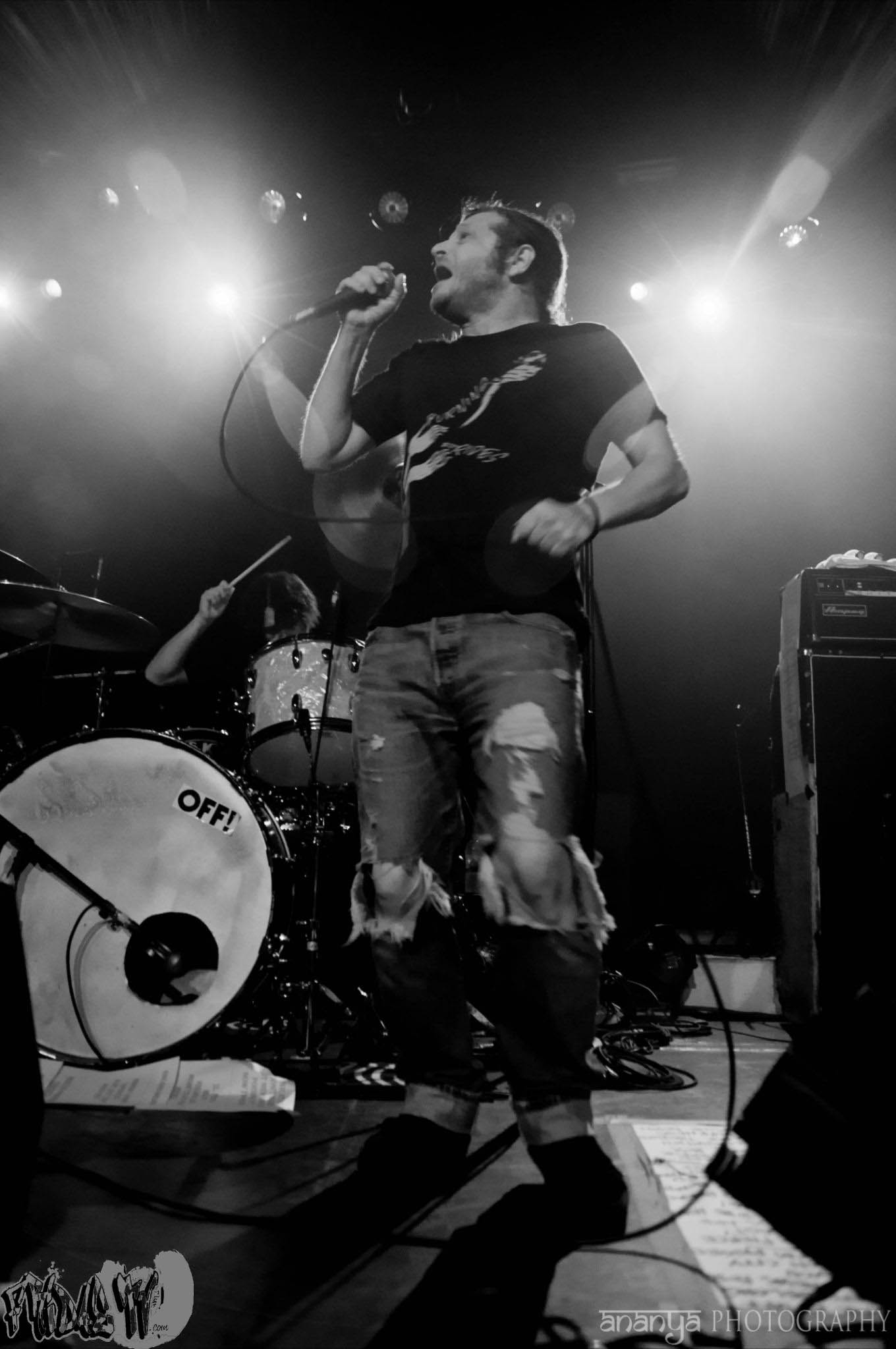 We hit up the July 23rdshow, it was packed but not sold out like the previous evening for the first show. The venue filled up nicely and the crowd was fantastic. As a bonus we saw some cool lightning action by the water as we waited for the bands to start. There were a few people I recognized at the show; it was good to see familiar faces. I was texting by the pit entrance waiting for OFF! to hit the stage as the security guard excitedly pointed out a member from Billy Talent as he passed us by, it’s always awesome to see male security guards teenie out! OFF’s set began at about 9:30 and they played until approximately 10:15. I have never heard of OFF! before so this was intriguing to me, I always like to see fresh bands because it leaves me curious to see how they sound without anyone’s opinions trying to cloud my ears.