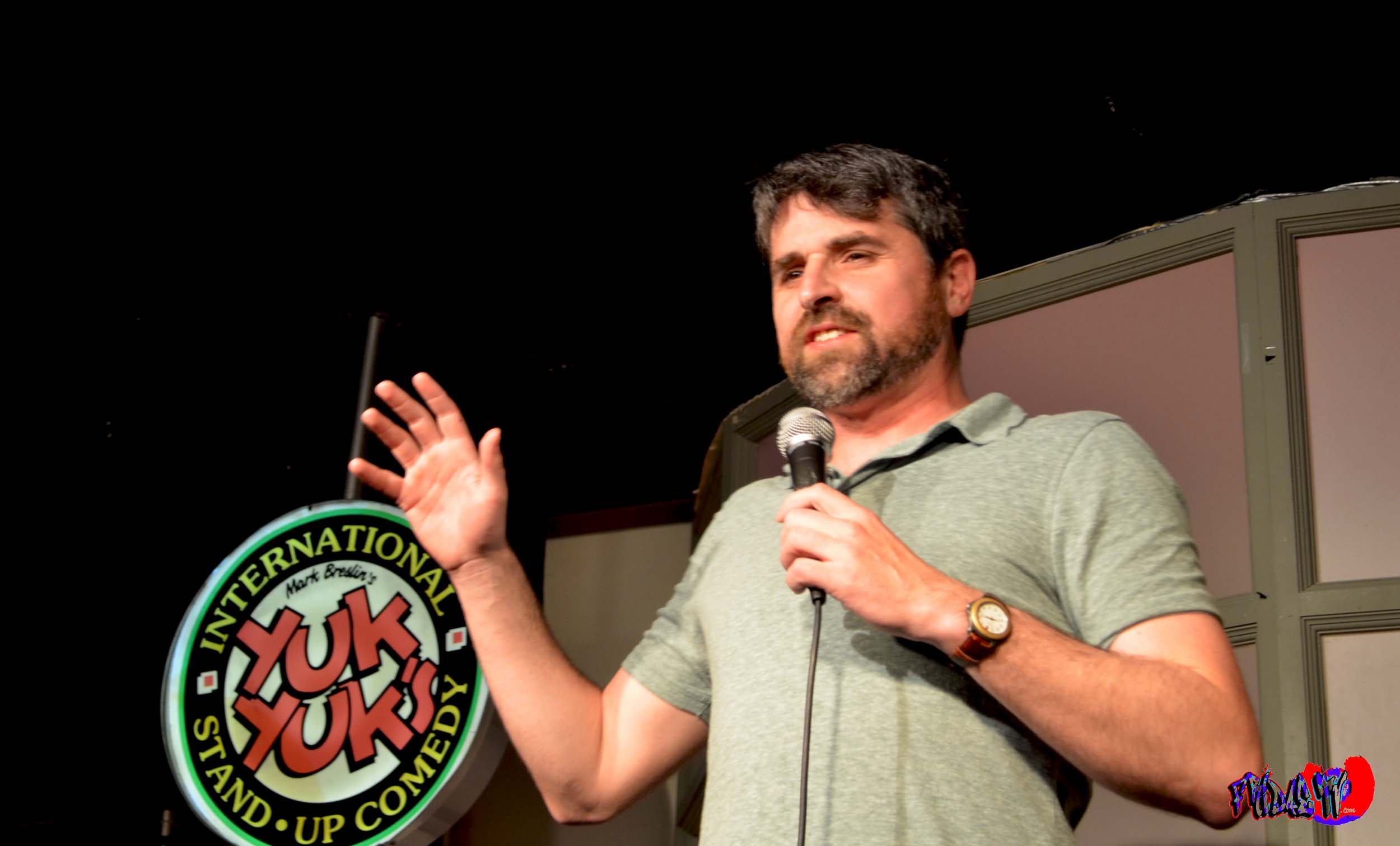 There were two comics prior to Green, Trevor Thompson and Patrick Coppolino.Trevor and Patrick were funny but honestly after seeing a few stellar amateurs at Yuk Yuk’s and a number of other comics in the past, they were not that funny but did make me laugh a bit. Green, was funnier than his openers but extremely overrated and not really a Russel Peters, Chris Rock type of comic. He relies more on his eccentric antics and catch phrases than actual material. Perfect example of this is his famous line “Daddy would you like some sausage” from 2001’s “Freddy Got Fingered” which he gladly said over and over again. The plan was to take a few shots and enjoy the set like I did with the openers. Green walked out on stage and scanned the crowd, after saying a few words to the first victim, he spotted me and then saw my camera. He jibbered on about how big it was and how nobody asked him to take pictures. My camera is not that big, it’s just a Nikon 5100 Dslr with the basic 18-55mm lens, I can fit it in my purse. Anyway, in typical Tom Green fashion he yelled in my face, asking if I was a student at Ryeeerson Poleeetechnical University and wanted a picture for my project. At this point I was in tears from laughing so hard, I could barely talk when he asked who I worked for. “FridaeTV!? What the fuck is that?” Oh your name, oh ok I get it.” I was trying to stop laughing and he thought I was upset; “I don’t think she’s enjoying herself anymore, don’t worry you’ll get lots of hits, come to me at the end of the show and I’ll take a picture for you FridaeTV.”