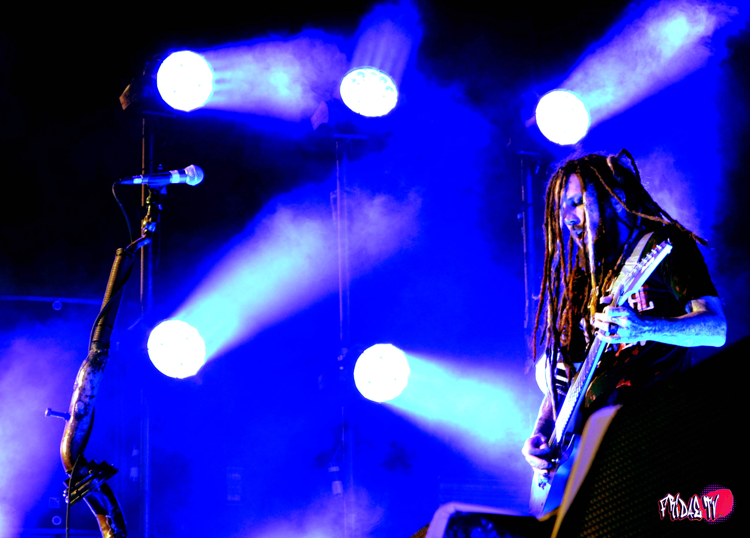 Back to this festival, for the next band I couldn’t have been more excited than I was. On the outside I was the usual totally cool Fridae but inside I was teenying out hardcore! This band I could never see because I was like nine when they first emerged onto the scene. And, do you really thing my Sensei Father let me go to a rock concert? He didn’t even let me sleepover at my friends house next door! I only really got to know their music because my first high school boyfriend was obsessed with them. Randal was one of those “rebellious rich kids” who had a Korn patch and button on his backpack and probably still is a huge fan! Who knows, he may have been at the show. Always has been my ex boyfriends who have introduced me to rock music in my teen years. My Dad was into the old school classics like Jimi Hendrix, The Doors, Queen, Genesis, The Police etc. And I love R&B, Soul, Rap. As for Korn, I have not had the opportunity to experience them live and to have the chance to watch and listen to some of my favorite tracks was incredible! Covering the band was the icing on the cake. As elated as I was for their set, one thing I was praying for was that Korn would be good live. So many bands and artists I’ve been a fan of that I have covered were horrendous live.