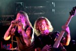 Lacuna Coil had a few cool looking crowns decorating the stage and once they migrated out they we’re greeted with cheers as they kicked off their well blended fifteen track set with big tune Trip The Darkness off of Dark Adrenaline. That tune was soon followed by Spellbound from Shallow Life. Vocals by Andrea Ferro were almost flawless, he gave the people what they wanted…A Performance! I noticed some technical issues with the microphones but Ferro embraced it like a champ. Cristina’s vocals were strong, she sang her heart out and the fans couldn’t get enough, especially when they played Depeche Mode cover “Enjoy The Silence” to end the set. I liked Lacuna Coil’s rendition of the song much better than the original. Maus Biazzi on the axe was beyond incredible those licks were spectacular to hear! The beat was tight thanks to stellar stick handler Ryan Blake Folden and Zelati’s Bass lines were on point.